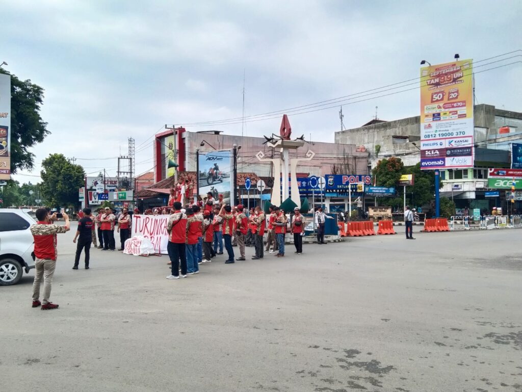 12 September 2022Pada hari Senin, 12 September 2022, Pukul 09.35 Wib, bertempat di Tugu Pena Jalan Jend Sudirman Kota Metro, telah dilaksanakan Aksi unjuk rasa Turun ke jalan, Penolakan Kenaikkan Harga BBM oleh Ormas Gerakan Masyarakat Lokal Indonesia (GML). Surat pemberitahuan kegiatan sudah disampaikan ke Polres Metro.Sehubungan dengan hal tersebut di atas, dapat kami laporkan kepada Bapak sebagai berikut :